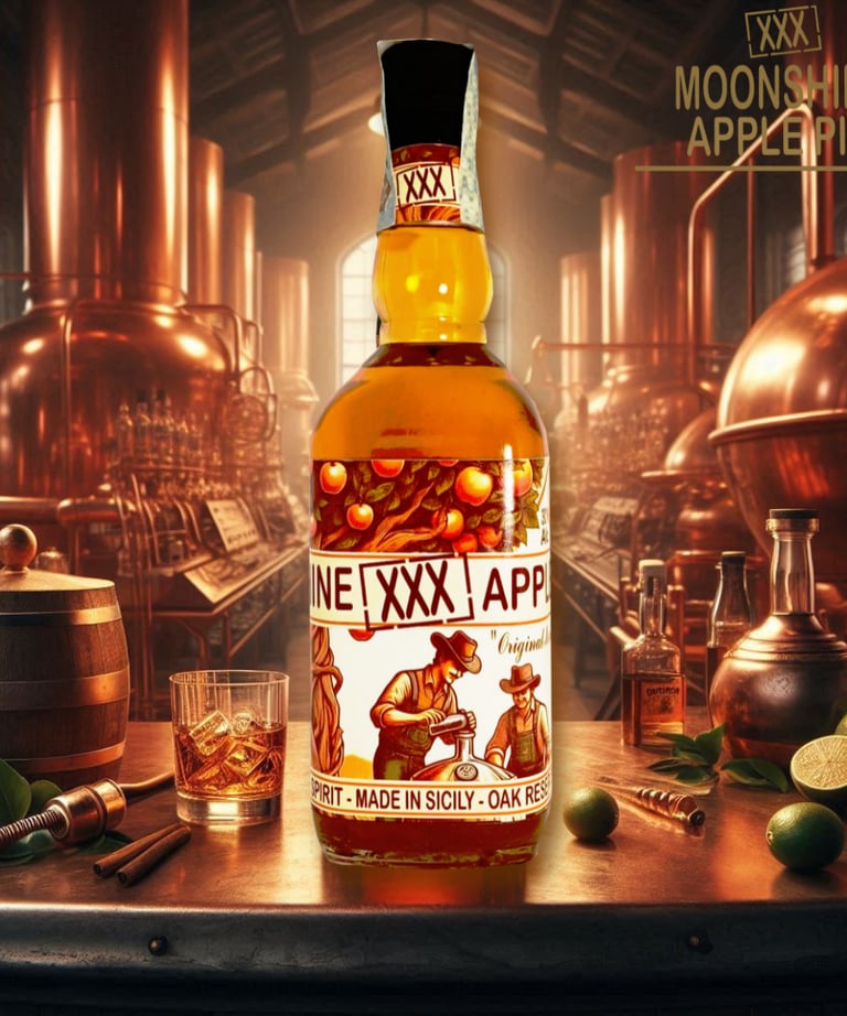 Apple Pie di Moonshine XXX è un liquore artigianale che celebra la tradizione americana del moonshine e i profumi della torta di mele fatta in casa. Realizzato con whiskey, succo di mele, zucchero e aromi naturali, questo distillato ambrato offre un equilibrio perfetto tra dolcezza e spezie, evocando il calore e la convivialità delle feste di campagna.